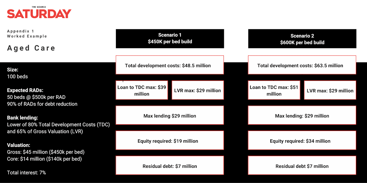 Hear me out – here’s the thinking. Unless you’ve been living under a rock, you’ve probably seen the headlines: US President Donald Trump’s sweeping new tariffs on imports have rattled global financial markets – Australia included. While the US only accounts for about 5% of our exports, the real concern is the ripple effect. Tariffs targeting Australia’s major trading partners, like China and Japan, could put a serious dent in our economic growth. But what does all this mean for aged care – especially when it comes to building new beds? Here’s where it gets interesting. The market chaos has fuelled speculation that interest rate cuts are back on the table. Some financial outlets are now reporting a 100% chance of a rate cut in May, with the possibility of up to four this year which could drag the cash rate down below 3%. That could be a game-changer for aged care operators currently sitting on the fence about new developments. Let’s look at the numbers. We published this example in SATURDAY last May: