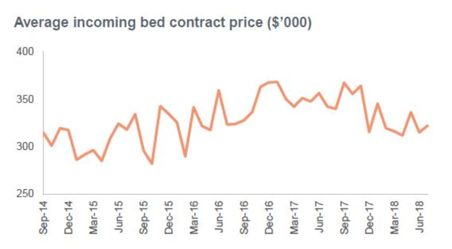 Average incoming bed contracts also dropped from $350,600 in the first half of 2018 to $323,900 in the second half as Japara cuts its prices to try to counter declining occupancy.