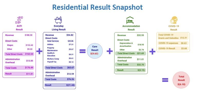 However, the average result is still a deficit of $6.10 per bed per day or $2,060 per bed per annum (down from an $8.23 deficit per bed per day/ deficit $2,835 per bed per annum in March 2020).