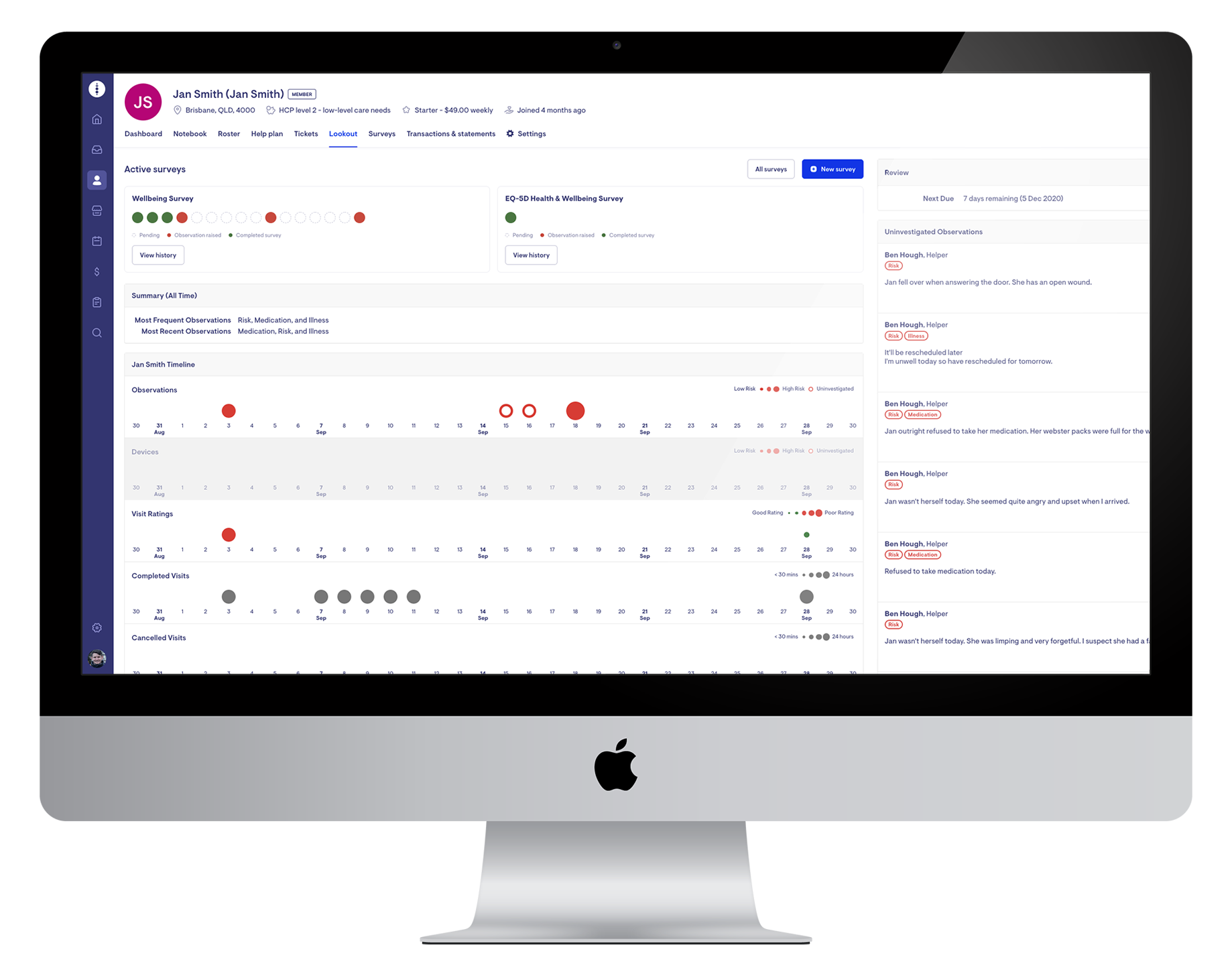Lookout can be utilised to run both home and telehealth care services from a single platform with a unified view of the care needs and history of every customer.