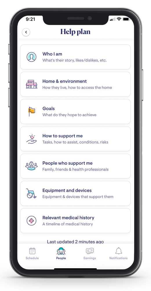 The dynamic care plan is designed to evolve with the needs of your clients and ensure that all stakeholders have the information they require to deliver fantastic care all in one, secure digital record. The dynamic care plan can be updated in real-time by your case managers. Changes are tracked for auditing purposes and then updates are published immediately to the care worker and client app and time-stamped so people can see how current and up to date they are.