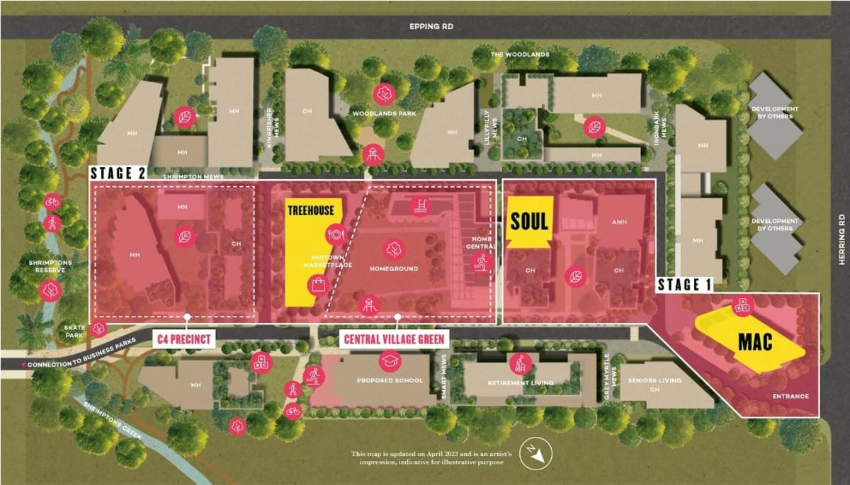 MAC Residences has 269 studio, one-, two- and three-bedroom apartments and two penthouses and welcomed its first residents this month, while the Candalepas Associates-designed Soul Residences comprises 107 one-, two- and three-bedroom apartments. In redeveloping the former social housing Ivanhoe Estate, the project will increase community housing dwellings on the site from 259 to a minimum of 950 among an eventual 3,300 residences at Midtown MacPark. Community housing apartments at Midtown MacPark are owned by the NSW Land and Housing Corporation and managed by Mission Australia Housing, which will have full time staff members based on site to link residents with services and support. Rod Fehring, chair of Frasers Property, has said in the past that the development will be a community whose intergenerational residents will take care of one another, rather than the model of a traditional retirement village where one operator cares for a limited age bracket.