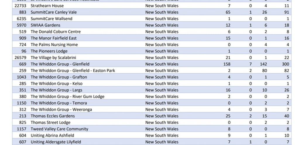 • Warrigal Care Goulburn, NSW, 109 cases;