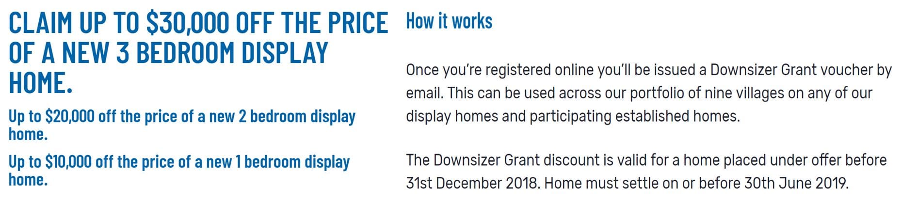 They are offering $10K off a new one bed home, $20K off a two bedder and $30K off a 3 bedroom home if you commit before 30 December and settle by 30 June.