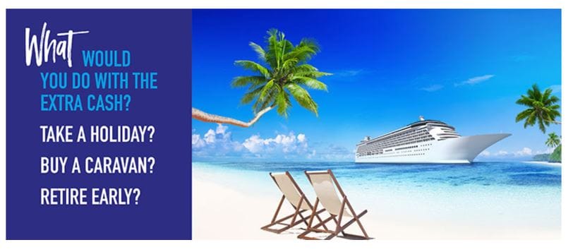 Targeting their market, they ask “What would you do with the extra cash? Take a holiday? Buy a caravan? Retire early?”