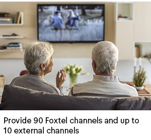 With Foxtel’s entertainment package, your residents will also have access to 90 channels of quality entertainment as well as an extensive library of programming that they can access whenever they want – great for those night owls or early risers who may be stuck for something to watch out of prime-time hours! With the Business iQ, you can also add up to 10 external channels to the programming mix that will all be accessible from the on-screen TV guide. This could be used to add sensory channels that are beneficial to residents suffering from dementia or audio channels such as Silver Memories playing music from the 1940s-70s. You could also add yoga, meditation or other wellbeing channels to help promote healthy lifestyles amongst the residents. Foxtel’s product offering has evolved to bring residents more than just content; the Business iQ is a platform that can help to improve their experience and would be a highly valued addition to your daily operations. Learn more about the Foxtel Business iQ system, or contact Tom Enright, Foxtel’s National Health Manager, on (02) 9813 6769.