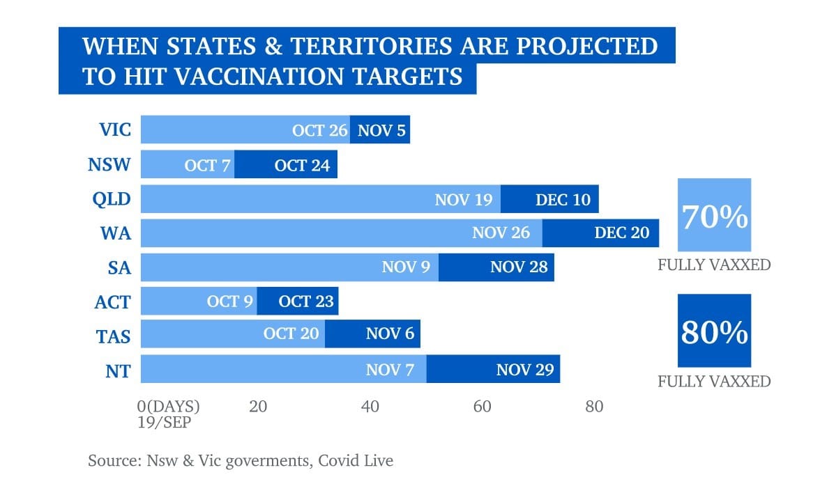 The national move, which would exclude anyone under the age of 12, has been hit by the Queensland Government on Wednesday shutting down all aged care homes in Brisbane City and Moreton Bay Region after two people from the Gold Coast were infectious in the community. In Victoria, all of metropolitan Melbourne, Mitchell Shire and the City of Latrobe are locked down with COVID-19 cases growing.