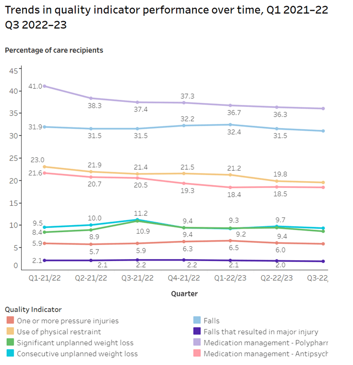 As part of the expanded Quality Indicator program, from 1 April 2023 residential aged care providers have also had to submit data on: