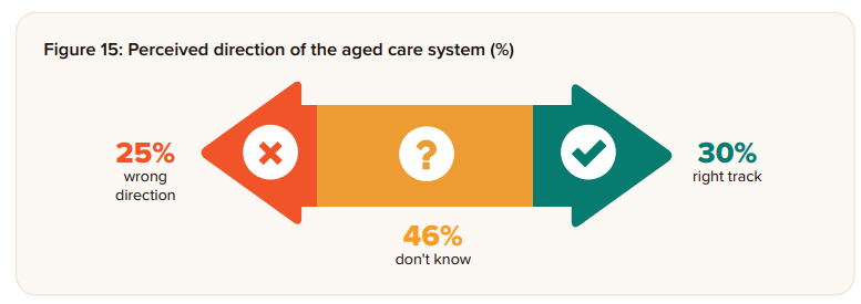 Worringly, the 60-page Ageing in Australia Community Expectations Report 2026, which surveyed 1,010 Australians aged over 18 in July and August 2025, found nearly half lacked to the knowledge to form an opinion, with 46% saying they “don’t know” if the sector is heading in the right direction.