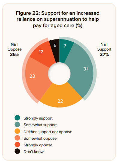 Means testing for aged care was well supported, and nearly two in five supported increased reliance on superannuation to pay for aged care.