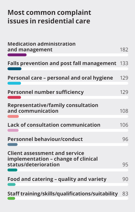 "Clinical issues are consistently in the most common complaints topics," the Aged Care Quality and Safety Commission (ACQSC)'s 66-page Sector Performance Report states.