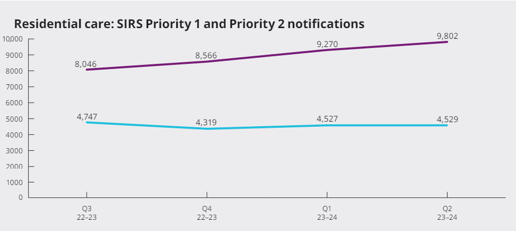- There was a 40% increase in unexplained absences compared with the previous quarter, according to Serious Incident Response Scheme (SIRS) data. Priority 1 notifications are decreasing, while Priority 2 notifications are on the rise - the report suggests this could be because providers' understanding of the scheme has increased. (Priority 1 incidents must be reported to the ACQSC within 24 hours and include an injury or discomfort that needs medical or psychological treatment, inappropriate sexual conduct, unexpected death, unexplained absence, or reasonable grounds for reporting the incident to the police. Priority 2 incidents must be reported to the ACQSC within 30 days and include reportable incidents that do not meet the criteria for Priority 1.)