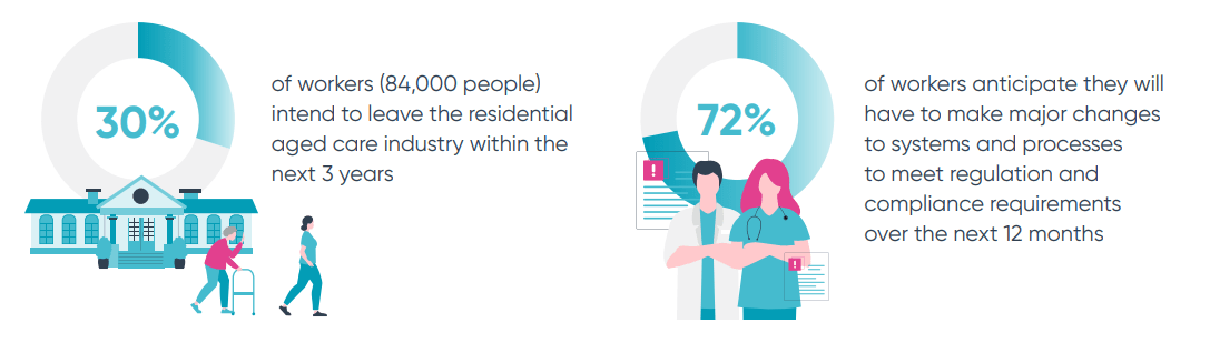 The Ideagen research also found 71% of aged care providers are struggling to recruit and retain enough RNs to meet the 24/7 RN and 200 direct care minute requirements. 53.8% of aged care providers said it is either ‘difficult to achieve’ or ‘moderately challenging’ to have a 24/7 RN on site and on duty at their facility. A further 12% said it was ‘impossible to achieve’. You can download the full report here.