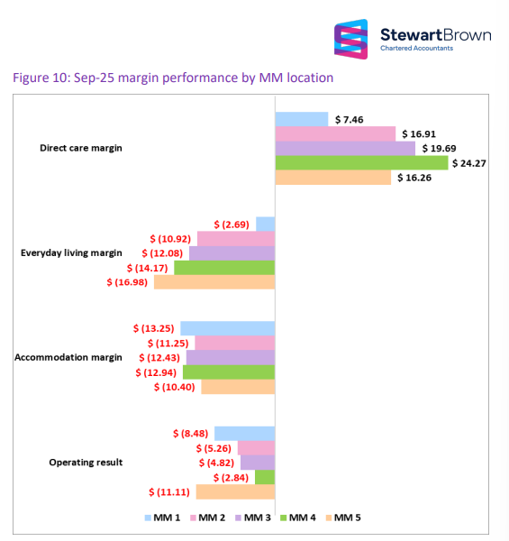 Direct care margins continues to cross-subsidise Everyday Living and Accommodation losses.