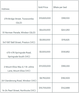 CBRE has brokered a range of other vacant aged care home sales recently, achieving rates from just over $115,000 per bed to Trinity’s $280,000.