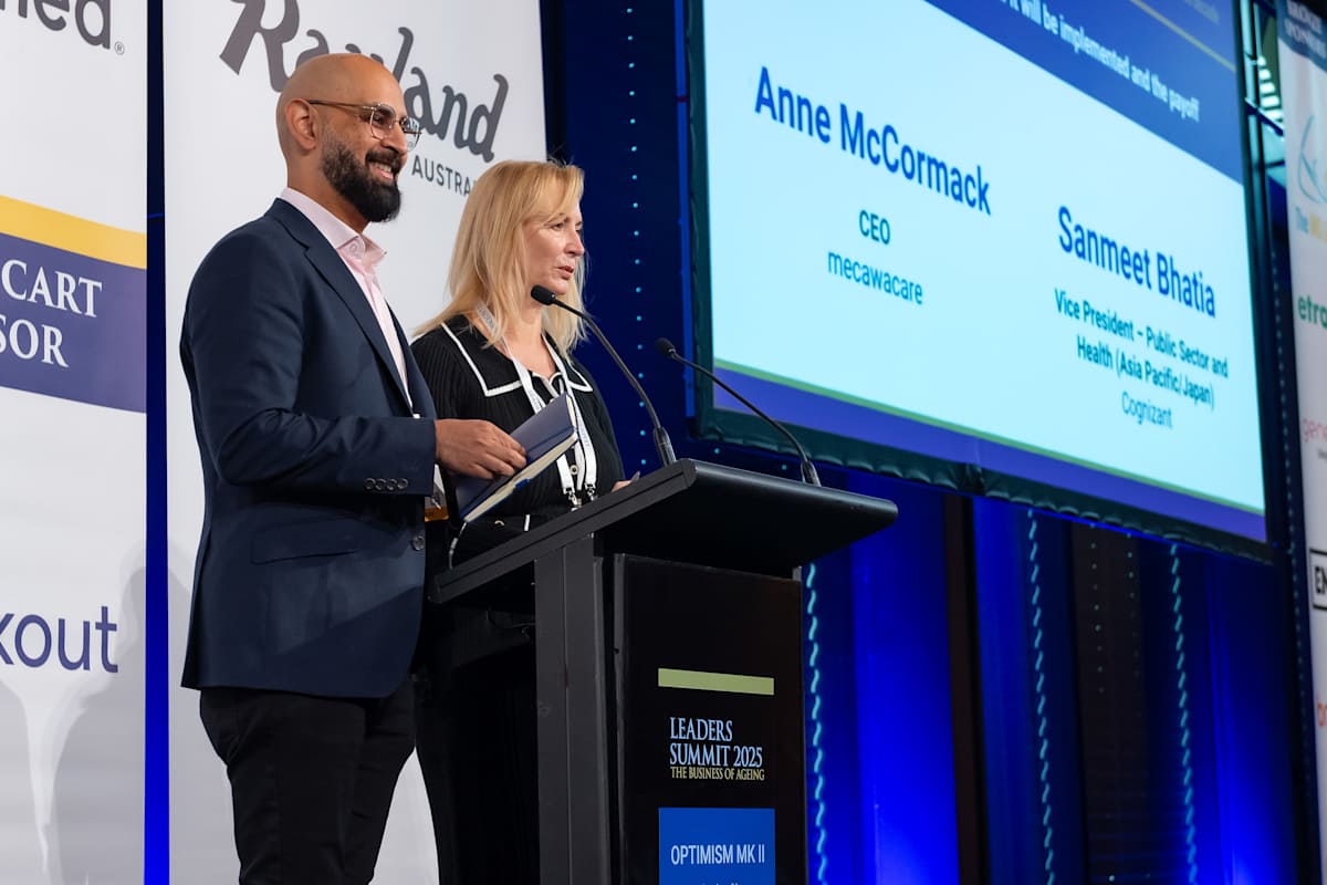 Anne McCormack, CEO of mecwacare and Sanmeet Bhatia, Cognizant Vice President - Public Sector and Health (Asia Pacific/Japan) spoke on their partnership on the implementation of a $20 million investment in technology at its Victorian aged care homes.