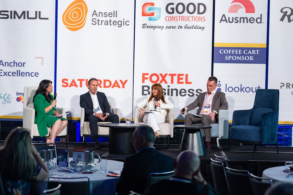 From left: Cynthia Payne, Managing Director & Founder at Anchor Excellence; Tim Humphries, CEO of Homestyle Aged Care; Diana Horvatovic, CEO of St Basil's Aged Care NSW/ACT and Cameron McPherson, CEO of Medical & Aged Care Group, in a breakout session on insights from a mid-sized operator. Can they survive?