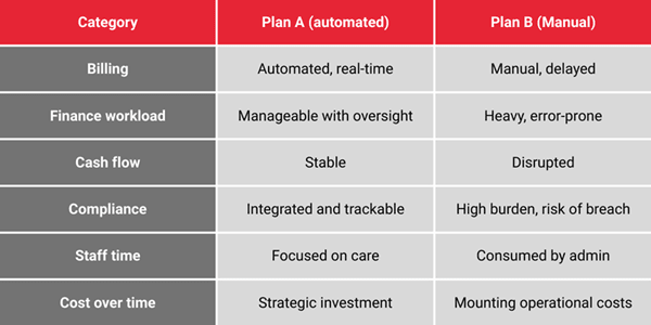 Plan A, therefore, is the only option. For many aged care organisations, this will mean moving away from legacy systems and embracing cloud-based platforms, data integration, and automation.
