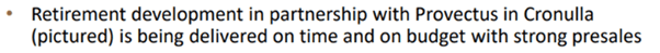 It chose to feature its financial involvement in Provectus Care’s Sage by Moran in its FY23 Results Investor Presentation on its Property Page where it has eight investments worth $112.6 million.