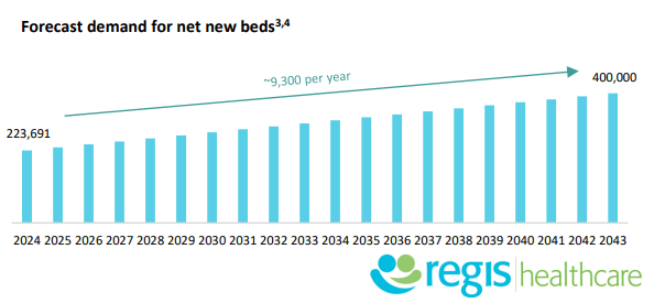 The group has also signed contracts to acquire sites in Essendon and Coburg in Victoria for future greenfield developments, with settlement on those sites expected in H1 2025-26. These could add an additional 240 beds for Regis, meaning there is the potential for 560 new beds through greenfield developments over the next few years. Its Camberwell (VIC) home opened in November 2024.