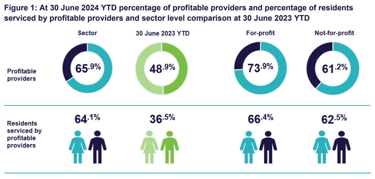 The improved profitability was largely the result of a $1.2 billion increase in AN-ACC funding between Q4 2022-23 and Q4 2023-24 to cover higher labour costs due to mandatory care minute targets. However, with 60% of aged care homes not meeting both their care minute and RN targets, the report says higher labour costs "may reduce the scale" of profits in 2024-25.