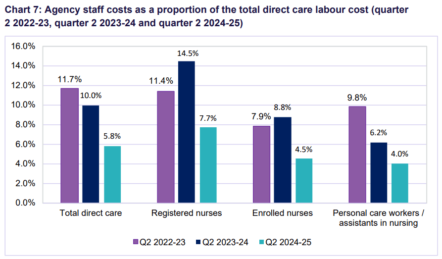 - Agency staff: down to 7.9% of care labour costs (from 10%)