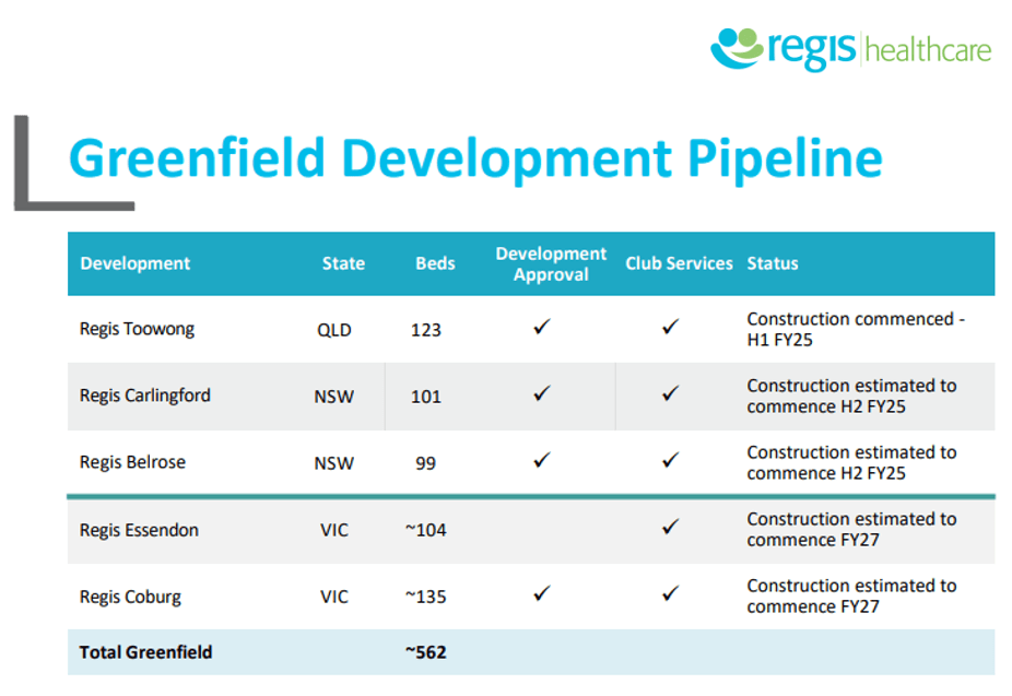 Regis currently has several greenfield sites in the pipeline, which could see up to 560 new beds constructed.