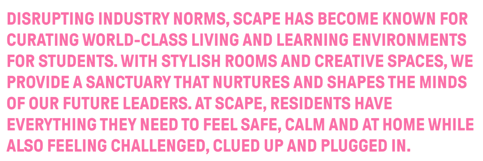 In student accommodation, Scape has been a disrupter in what was a sleepy and unimaginative sector. Scape created energy, colour and verve in each new building.
