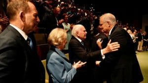 Prime Minister Scott Morrison announced at the Liberal Party’s campaign launch in Brisbane (pictured with former PMs John Howard (with wife Jeanette) and Tony Abbott on Sunday that he will extend an existing tax break allowing up to $300,000 from the sale of a family home to be placed into superannuation without a penalty. He will also lower the age limit for the tax break to 55 years of age.