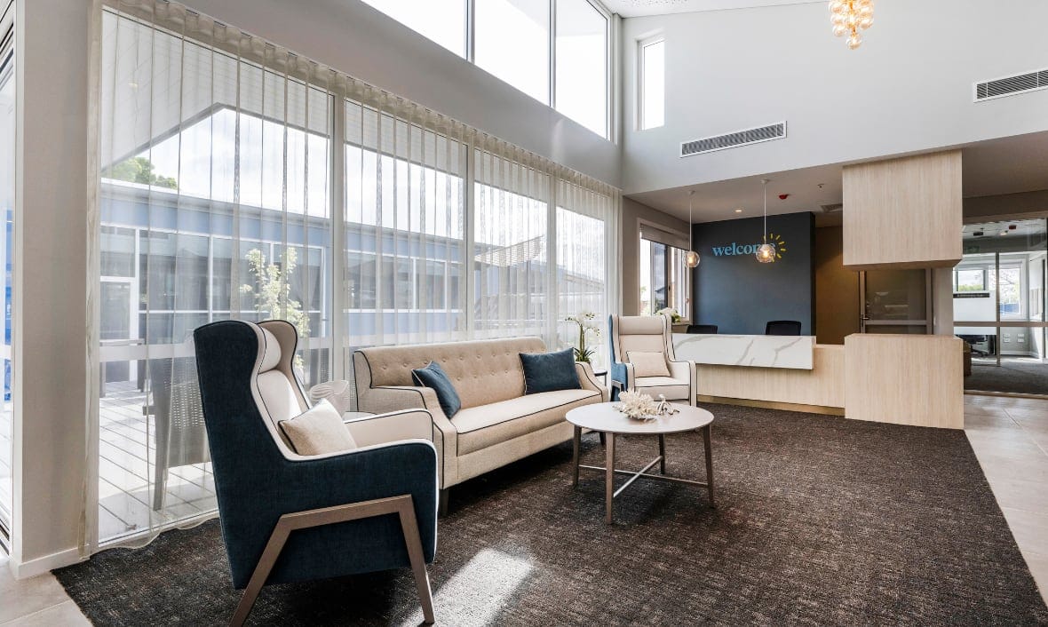 The redevelopment of St Catherine's Residential Aged Care home in Grafton, 600km north of Sydney, has been awarded the Urban Development Institute of Australia (UDIA) NSW Award for Excellence in Regional Development. Completed in April 2024, the Southern Cross Care NSW & ACT aged care home was expanded from 63 to 83 beds, and is now a high-quality facility with significantly improved resident and staff facilities. The redevelopment creates a warm and inviting entrance and incorporates natural light and landscape views into interior spaces. The home now has a spa room/hair salon, resident laundry, workshop, resident kitchens, library, café, and chapel.
