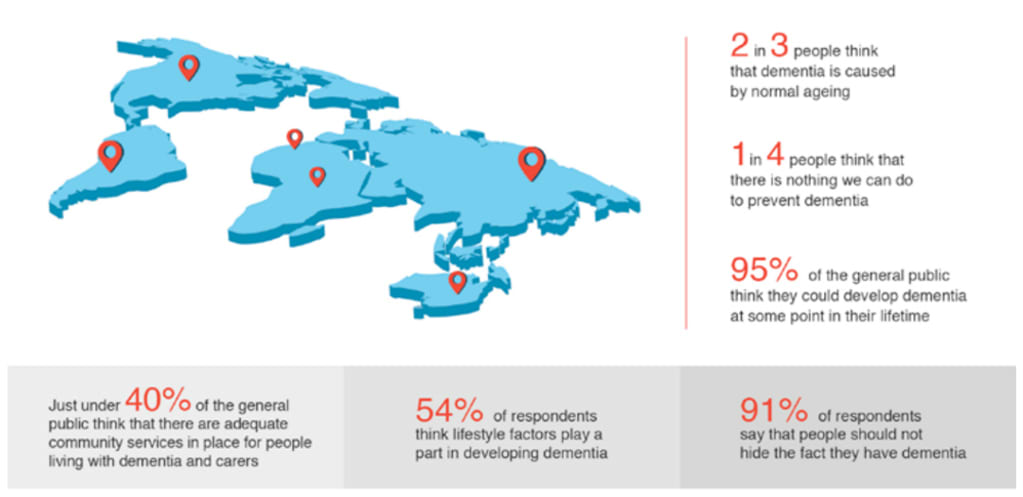 A 2019 survey of 70,000 people by Alzheimer’s Disease International (ADI) found two-thirds of respondents thought that dementia was an inevitable part of getting older. Almost all of those surveyed – 95% – thought they would themselves develop dementia in later life.