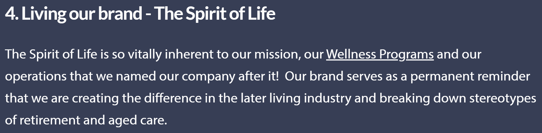 The major emphasis in the positioning and marketing is ‘wellness’ and the ongoing involvement of management in your goals.