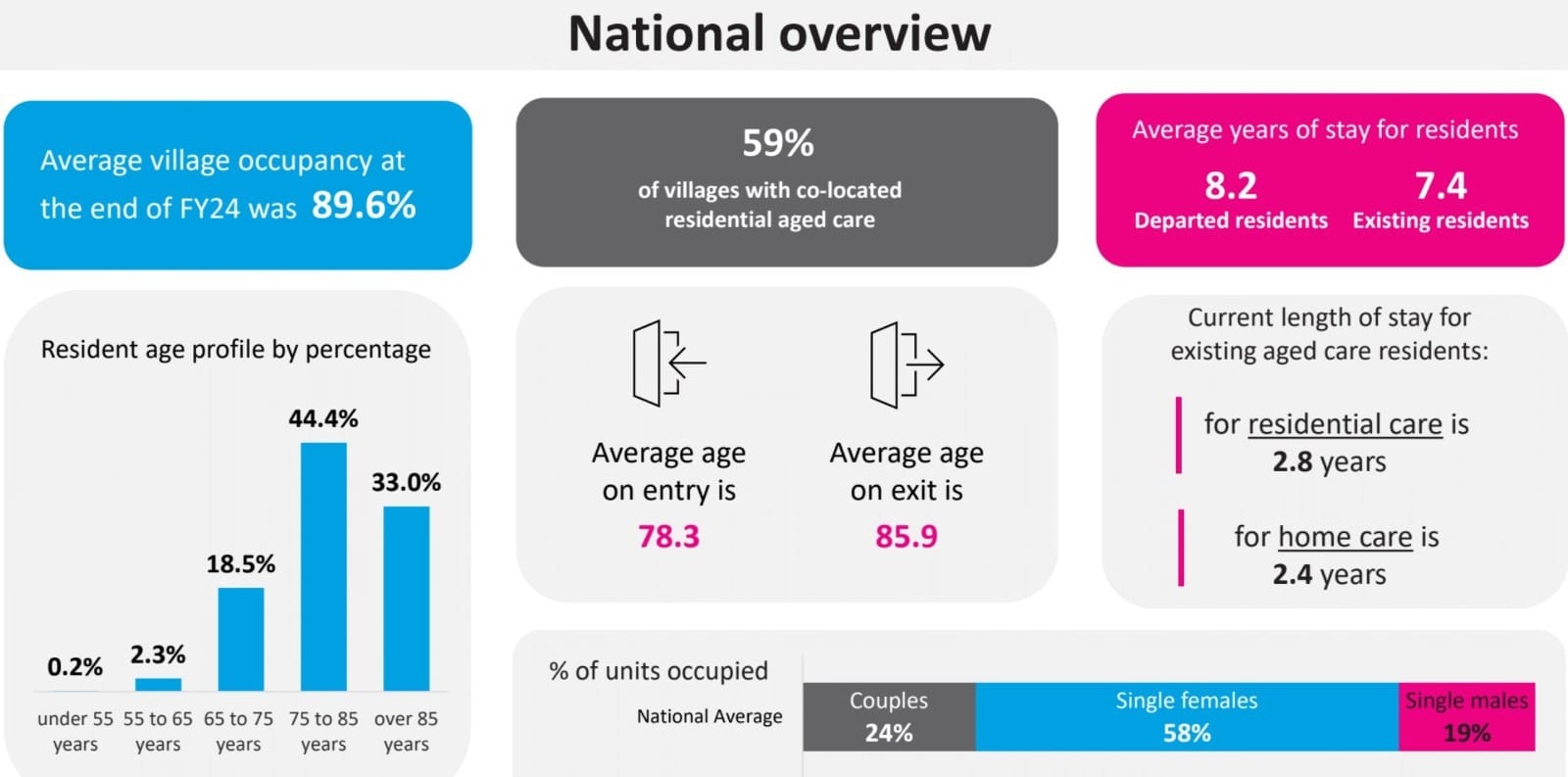 Stuart highlighted 26.8% of retirement living residents died in the village, with 43.5% of residents moving into residential aged care, slightly below those with a Home Care package.