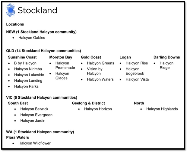 In addition, there will be future Stockland Halcyon communities in Western Australia, including within Stockland Illyarrie master planned community, and in Busselton, a beachside suburb south of Perth.