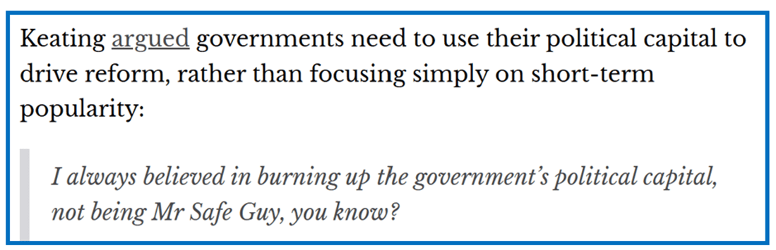 Paul Keating also spoke of ‘political capital’ being required drive reform (The Conversation):