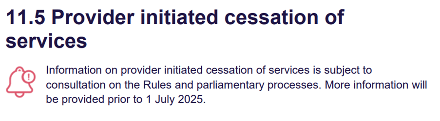 But operators still need consent from their customers for any significant price changes. Providers may therefore face difficulties if consumers refuse to pay for services, particularly when the prices are increased. Under the current security of tenure rules, operators can exit a client if they don’t pay. However, the Department of Health and Aged Care has yet to reveal if operators will be able to terminate services if consumers refuse to pay required co-contributions – simply stating in the Manual on page 134: