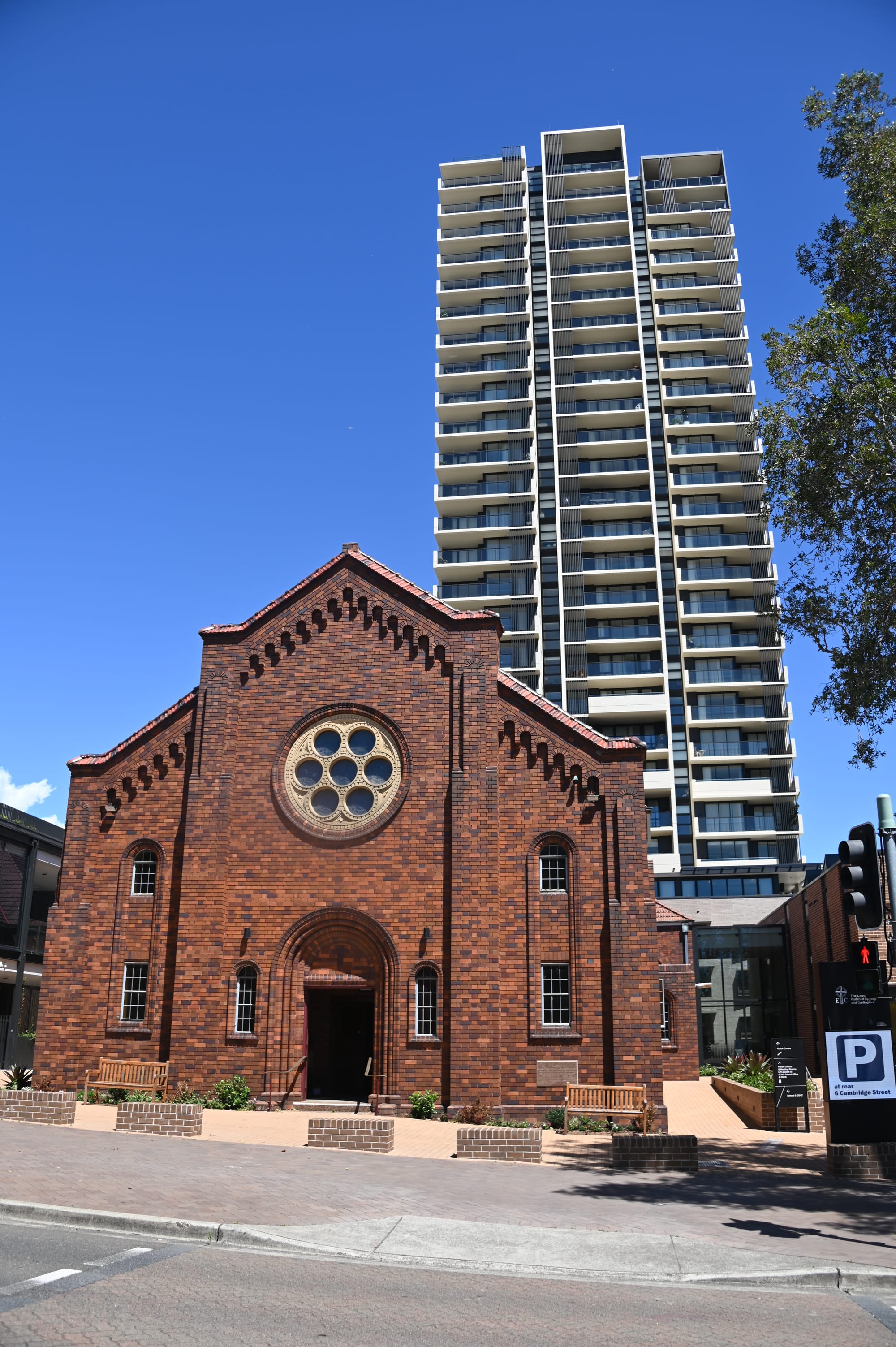 Delivered by Richard Crookes Constructions, The Cambridge sits within a larger redevelopment of the Our Lady Help of Christians church and school site, undertaken in partnership with the Catholic Diocese of Broken Bay. The bottom four floors house Opal HealthCare’s 132-bed Epping Grand residential aged care facility, with retirement living rising above.