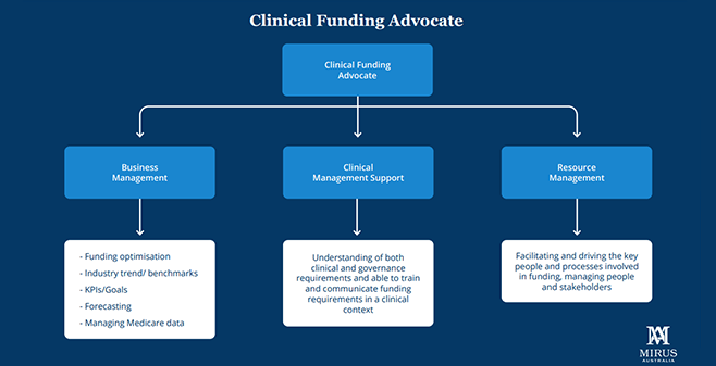 Through our discussions with providers and our own history working with ACFI teams across the sector, we have defined three key attributes of a great ACFI resource. We’ve then used them to characterize the attributes of a ‘Clinical Funding Advocate’ (CFA), a role that would enable the transition from ACFI to AN-ACC. The three attributes are Business Management/Analytics, Clinical Management and Resource Management. These attributes are described in more detail below in terms of how they add value now and how that may change in the ANACC world.