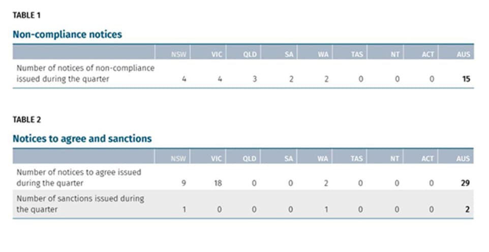 29 Notices of Requirement to Agree (NTAs) were also issued, along with two sanctions.