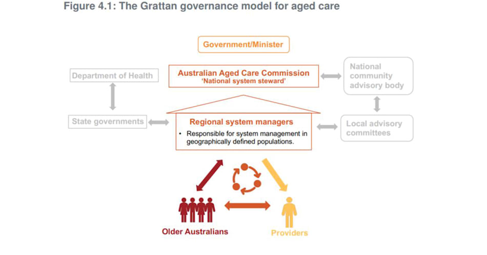 The report also puts forward a governance approach with clearly defined roles for the Department of Health and a new Australian aged care commission (similar to the one proposed by the Counsel Assisting), backed by a network of ‘regional system managers’ that would take over some of the functions of the existing Aged Care Quality and Safety Commission (ACQSC).