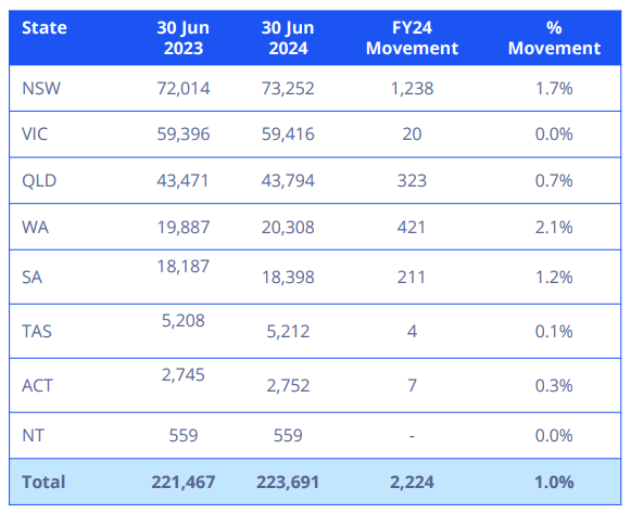 Source: Residential Aged Care Places: Summary Trends FY18-FY24, Colliers.
