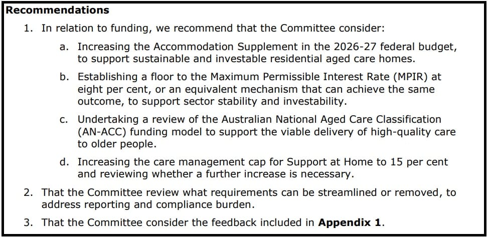 “Without recalibration, the Rules risk accelerating service closures, reducing residential bed supply and undermining access to care, particularly in regional Australia.”