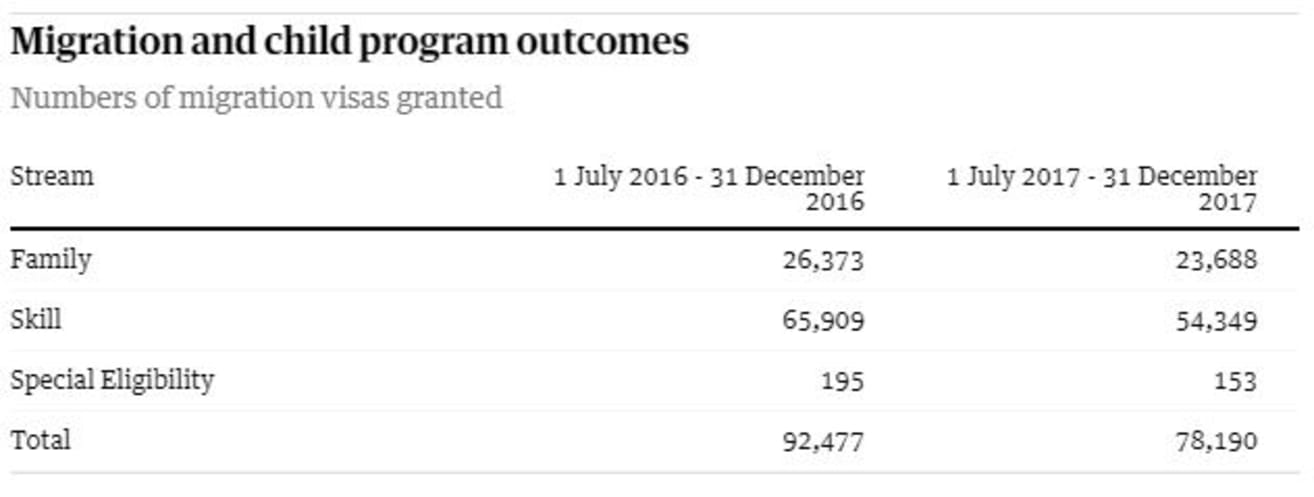The main falls have been across employer-sponsored visas, which have fallen from 22,843 to 16,047 this financial year, driven largely by changes to the 457 visa regime.