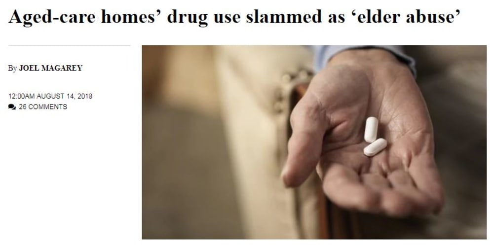 The News Limited paper has highlighted University of Tasmania research that found nearly two-thirds of aged care residents are given psychiatric drugs every day – often inappropriately prescribed – that are linked to strokes, falls and seizures.