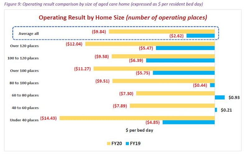 But homes with 120-plus beds also performed poorly, recording a deficit of $12.94 in FY20, followed by those with over 100 places at $11.27.