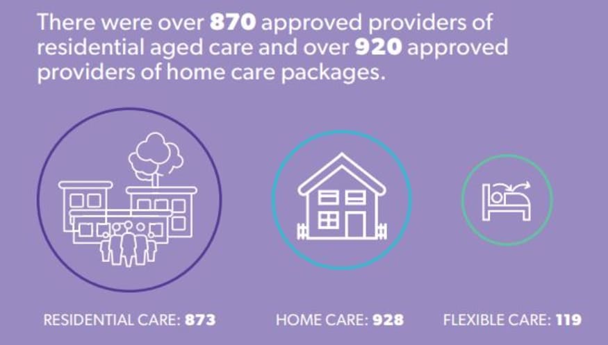 Two statistics stand out – the number of residential aged care operators has dropped to 873 whilst the number of home care operators has increased to 928. Just 21% of home care clients get their support from private operators.