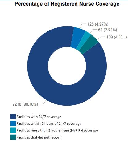 Nearly 5% of aged care homes are within two hours of 24/7 RN coverage, and 2.5% of homes are more than two hours from achieving the mandatory target. More than 4% of homes, 109 homes in total, did not report on 24/7 RN coverage, which does not include the 23 homes with an exemption in place, as of 1 July 2024. In August last year, 39 homes had been granted exemptions, as The Weekly SOURCE reported.