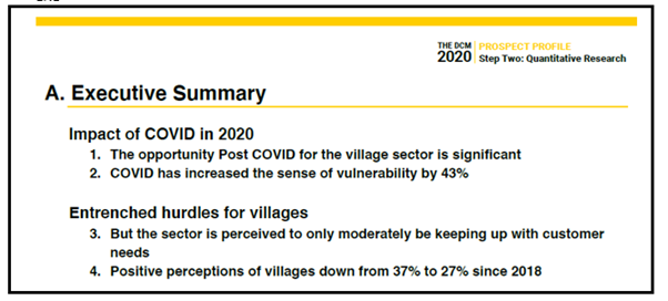 The same DCM research identified that the village sector has an underlying perception challenge, with positive views of villages declining from 37% in 2018 to just 27% in 2020.