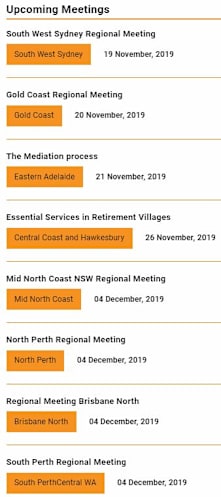 Each meet is staged at a retirement village so local managers can network and exchange local knowledge and coordinate local promotion of retirement villages.