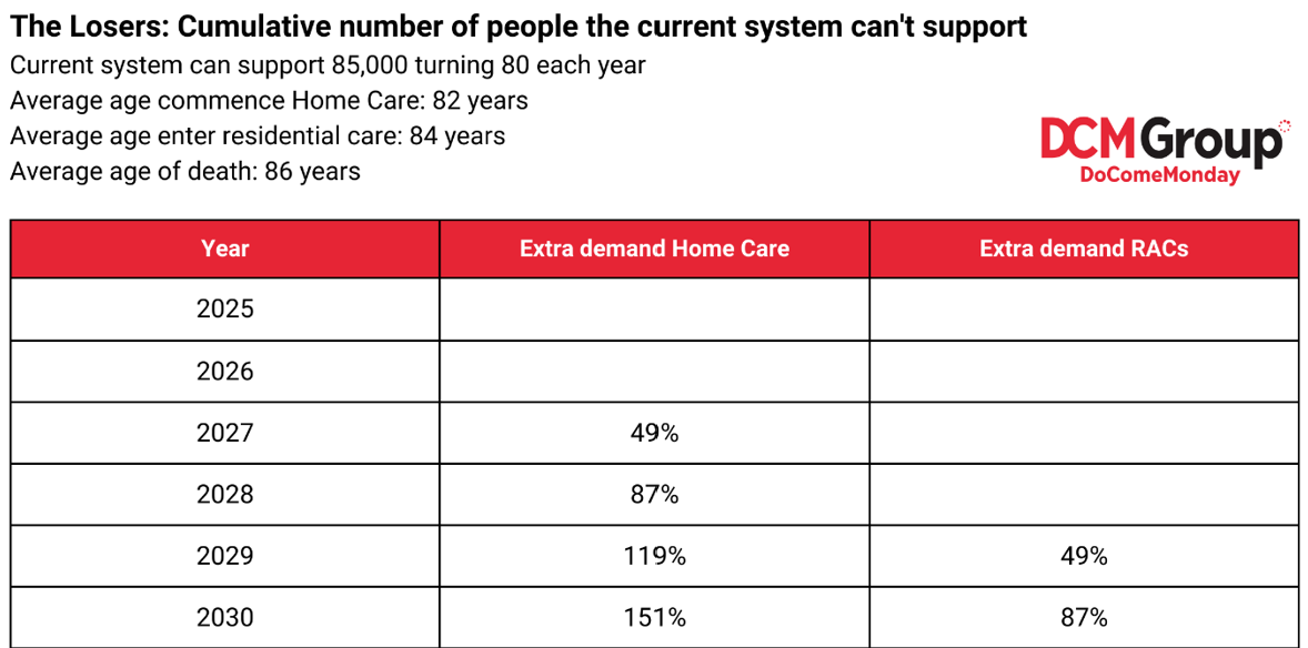 What it shows is that by 2027, when the first surge in people turning 80 turn 82 and start wanting Home Care, 49% won't be able to due to no workforce. That is around 120,000 people.